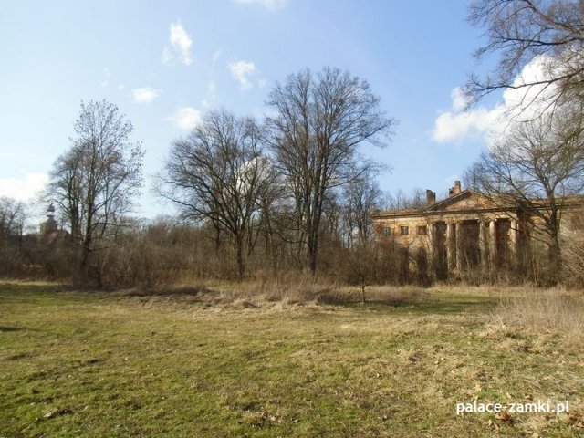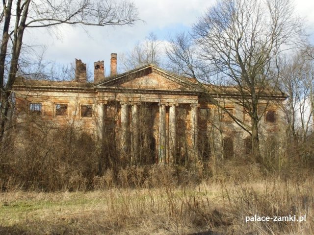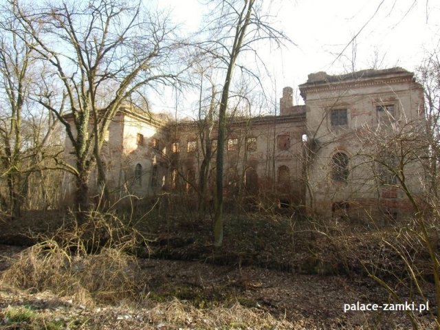 Według historii pałac zbudowano pod koniec XVIII wieku dla Ernesta Wolfganga von Tothkircha und Tracha. Ta rozległa budowla została wzniesiona w stylu klasycystycznym. Według danych archiwalnych pałac został podpalony w czasie działań wojennych. Podczas pożaru runął dach, a następnie drugie piętro. Kolejnych zniszczeń dokonali wandale, czynniki atmosferyczne oraz czas.