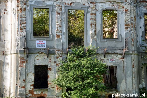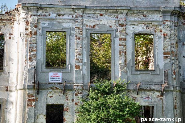 Stan założenie pałacowo-parkowego jest obecnie bardzo zły, co by nie mówić to już ruina. Dalszą destrukcję istniejących jeszcze fragmentów murów pałacu powodują korzenie roślinnośc i porastającej dookoła budynek. Podobnie wygląda sytuacja parku, który w znacznym stopniu porośnięty jest samosiejkami drzew i krzewów. Całą sytuację pogarsza fakt, że pałac został wykreślony z listy zabytków, a w rejestrze zabytków został tylko park pałacowy.