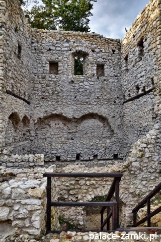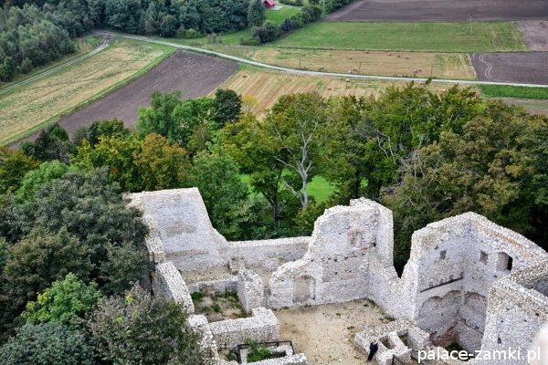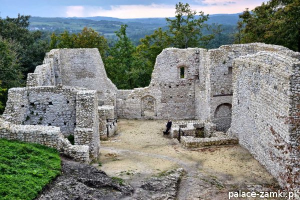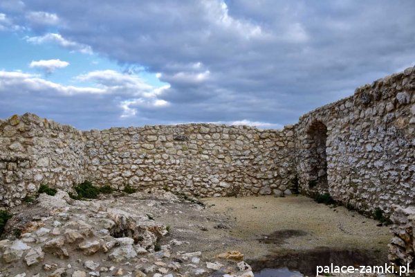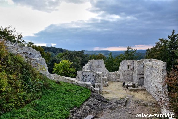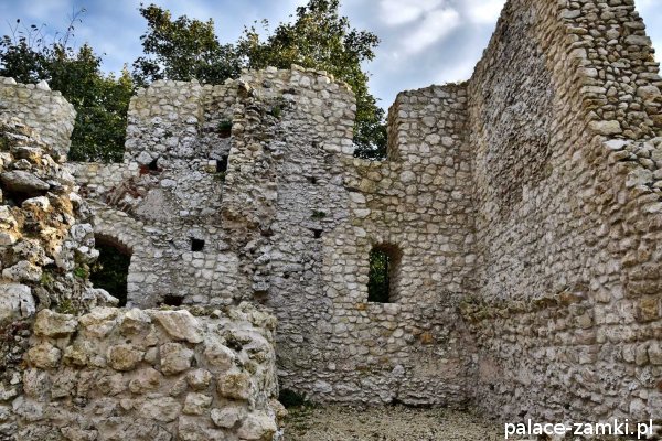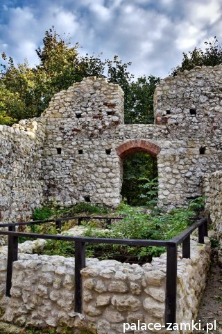 Przed wiekami do wieży przylegał kilkukondygnacyjny dom mieszkalny. Do podnóża wieży możemy dziś bardzo prosto dotrzeć dzięki nowym, drewnianym schodom, które zainstalowano wzdłuż muru. Na samą wieżę, z której możemy podziwiać panoramę okolicy, wejdziemy dzięki nowej klatce schodowej zbudowanej z metalowej konstrukcji i krat pomostowych. Podzamcze zachodnie powstało w wieku XVI i pełniło jedynie funkcje mieszkalne. Świadczą o tym pozostałości kilku okien, strzelnicy, oraz wewnętrznego podziału na komnaty. W jego murach znajdują się również ślady południowej bramy zamku. W południowym narożniku dziedzińca znajduje się studnia zamkowa.